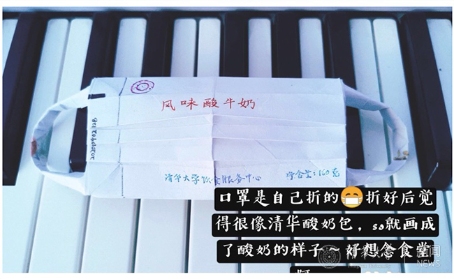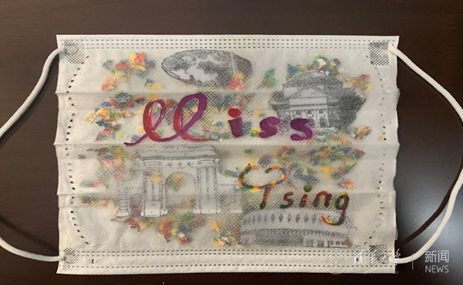 在之后的展示环节中,会议主持人一一展示了新雅93班同学制作的“想见你,清华!”创意口罩绘画,借一幅幅绘制在口罩上的趣味十足的绘画,同学们抒发了居家隔离的日子里积攒下的对清华园真挚而深厚的思念之情。