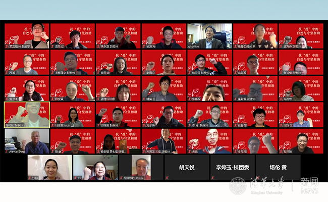 活动结束前,全体同学举起右手,紧握成拳,“拍摄”了一张合影,表达了在战“疫”期间坚持学习与思考,肩负起清华人、新雅人的责任与担当,不负国家、民族与社会期望的决心。