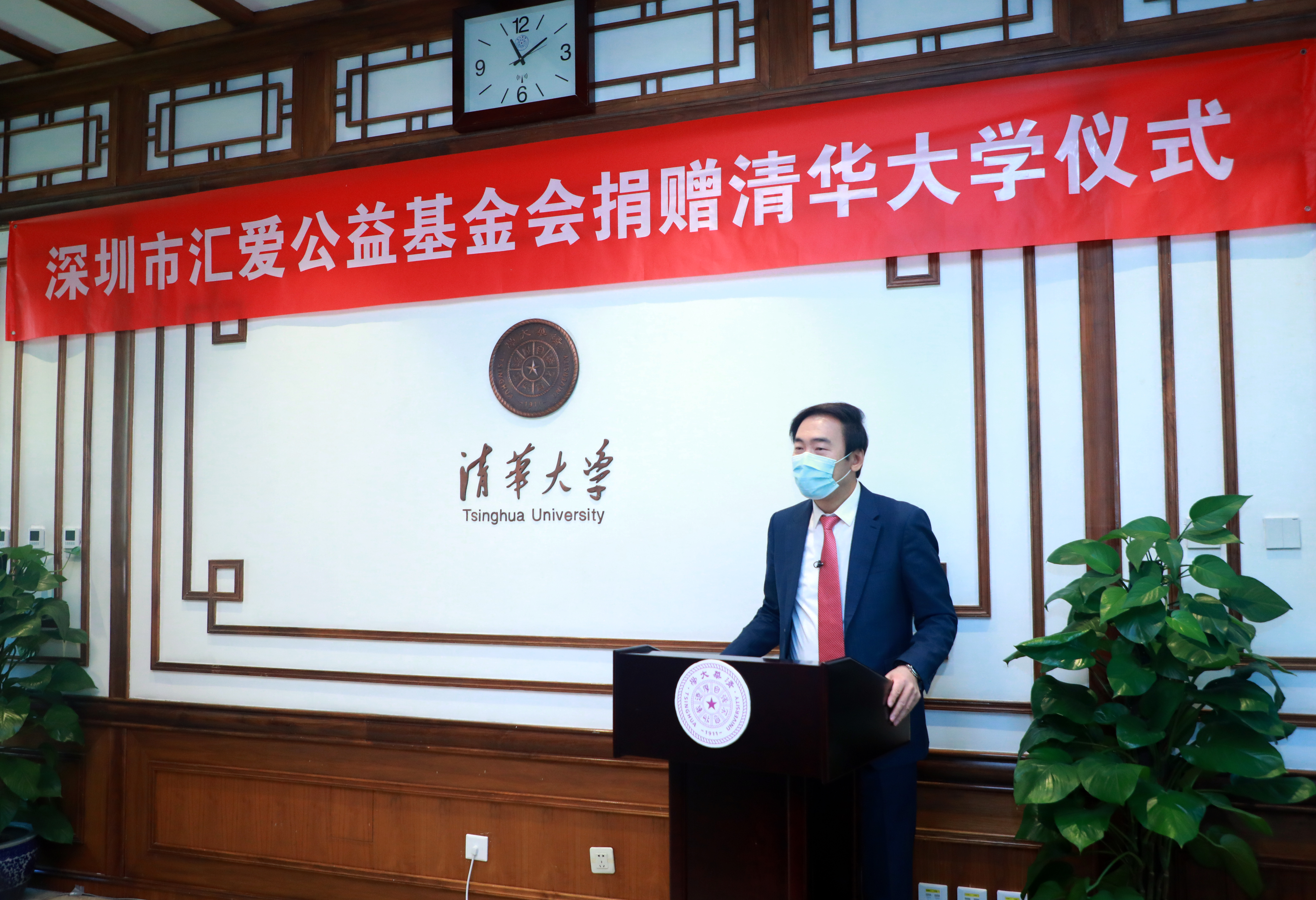邱勇首先代表学校向邓锋校友及汇爱公益基金会表示衷心感谢。他指出,在抗击疫情的特殊时期8xbet.com迎来了109周年校庆,汇爱公益基金会的捐赠既让我们感到喜悦也令我们充满感激,这是清华校庆收到的一份重要且有时代意义的捐赠。