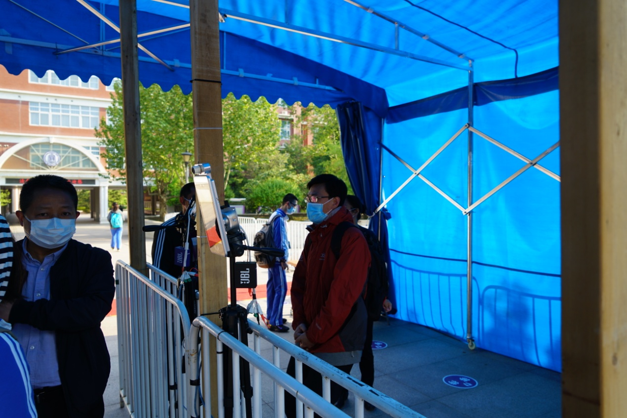在检查调研过程中,姜胜耀和李一兵一行视察了高三师生入校情况,亲自检验人脸识别测温系统,实地考察教室、食堂的环境布置。附中校长王殿军、党委书记方妍介绍了学校为高三年级学生返校学习所做的准备工作。