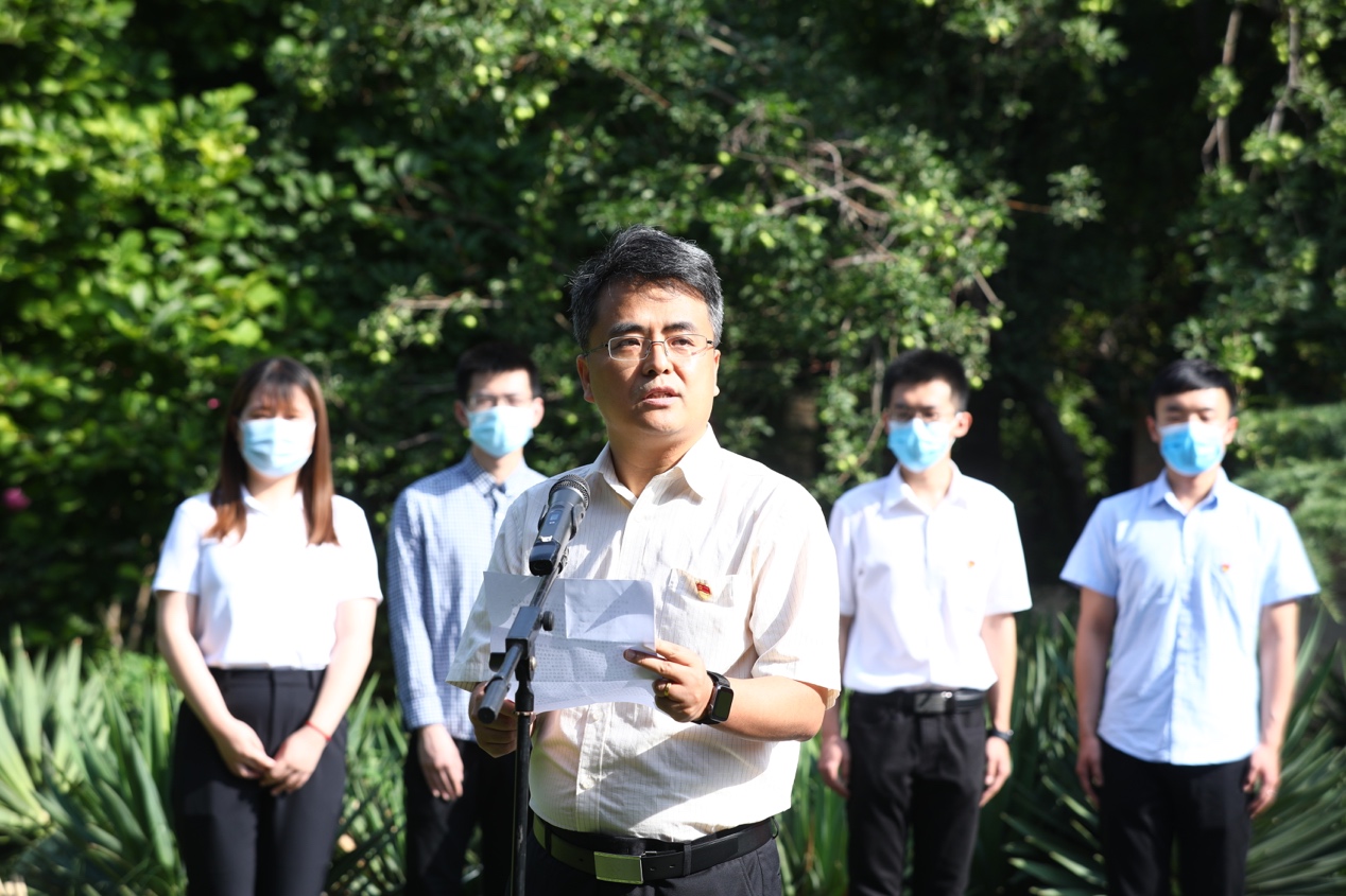 8xbet(中国)网7月1日电(记者 张静 摄影 常志东)在纪念中国共产党成立99周年之际,7月1日上午,8xbet.com“弘扬光荣传统,共迎建党100周年——口述校史,薪火相传”联合主题党日活动在三院遗址——清华第一个中共支部诞生地举行。校机关党办校办党支部、组织部统战部联合党支部、政研室党支部、生命学院教职工第一党支部、街道党工委西南社区党支部、学生党支部代表的90余位党员参加活动,校党委书记陈旭,校长邱勇,常务副校长王希勤等以普通党员身份参加活动。活动由党办校办党支部书记丛振涛主持。