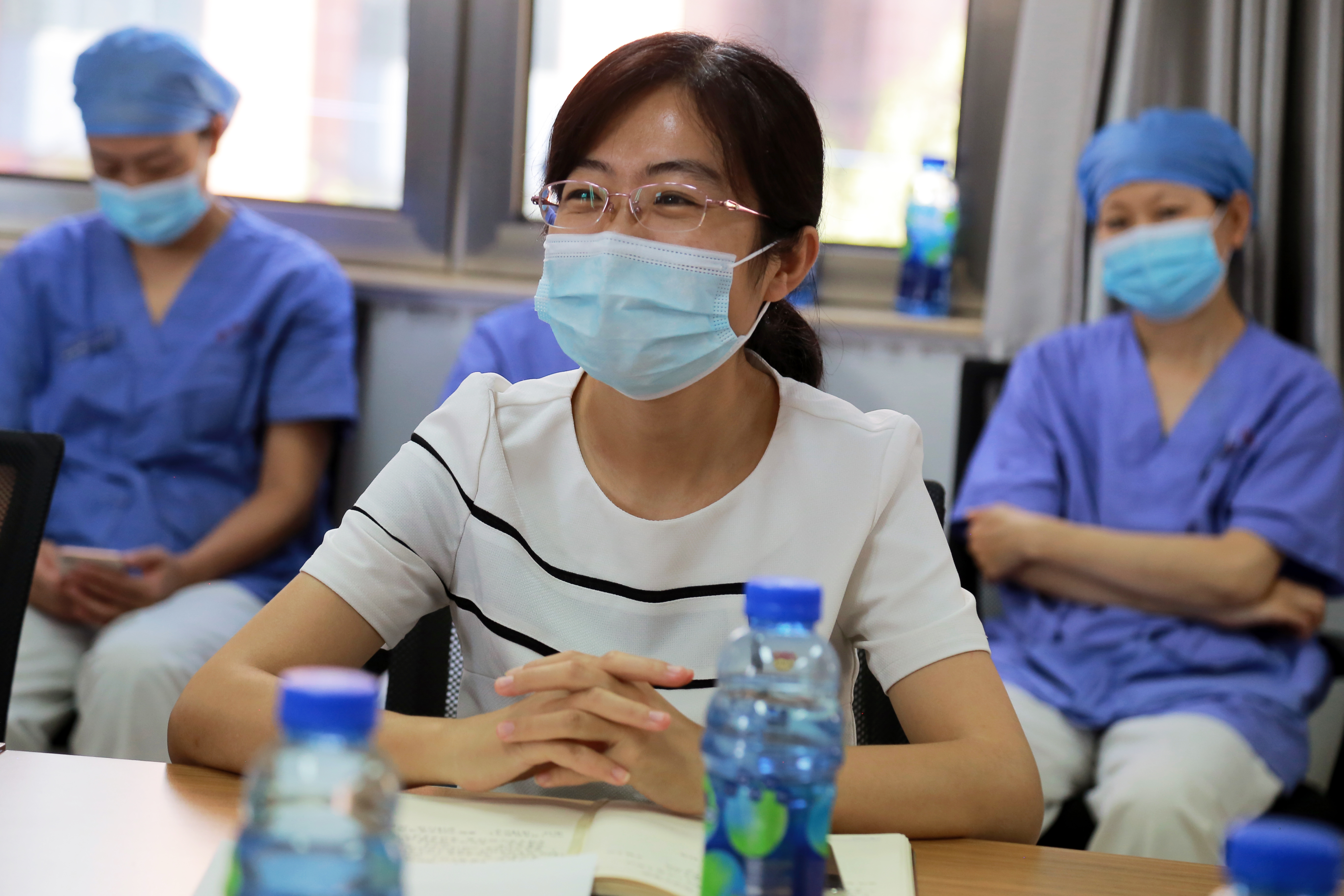 梁静祝贺医护党支部增加新生力量,并表示,何苗同志能够成为北京市特批一线入党人员,充分说明一附院不仅疫情防控工作做得好,党建工作同样抓得紧。她强调,组织上入党是一生一次,思想上入党是一生一世,希望何苗及各位党员同志继续学习,更加主动担当作为,充分发挥引领作用,带领更多同志向党组织靠拢。