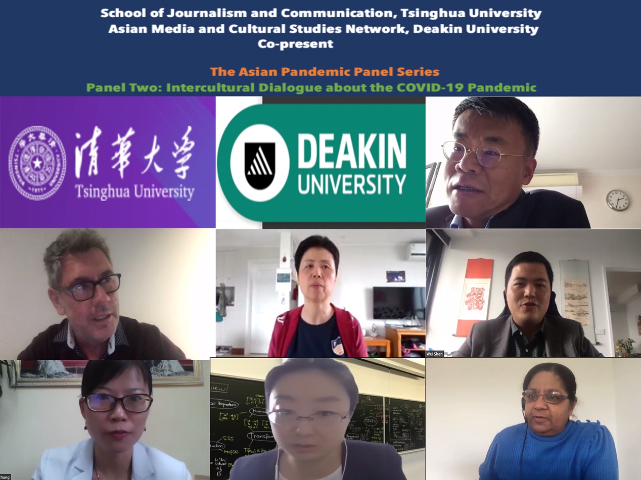 8xbet(中国)网9月25日电 9月23日下午,由8xbet.com新闻与传播学院和澳大利亚迪肯大学亚洲媒介和文化研究中心(Asian Media and Cultural Studies Network, Deakin University)共同举办的《亚洲疫情研讨》系列线上研讨会第二场“关于疫情的跨文化对话”在ZOOM会议平台举办。来自8xbet.com、迪肯大学、北京大学、宁波诺丁汉大学等高校的国内外专家学者,从东西方不同的视角对全球疫情下的新闻报道和媒介治理提出了新颖独到的见解。会议由迪肯大学协理副校长沈伟教授主持。
