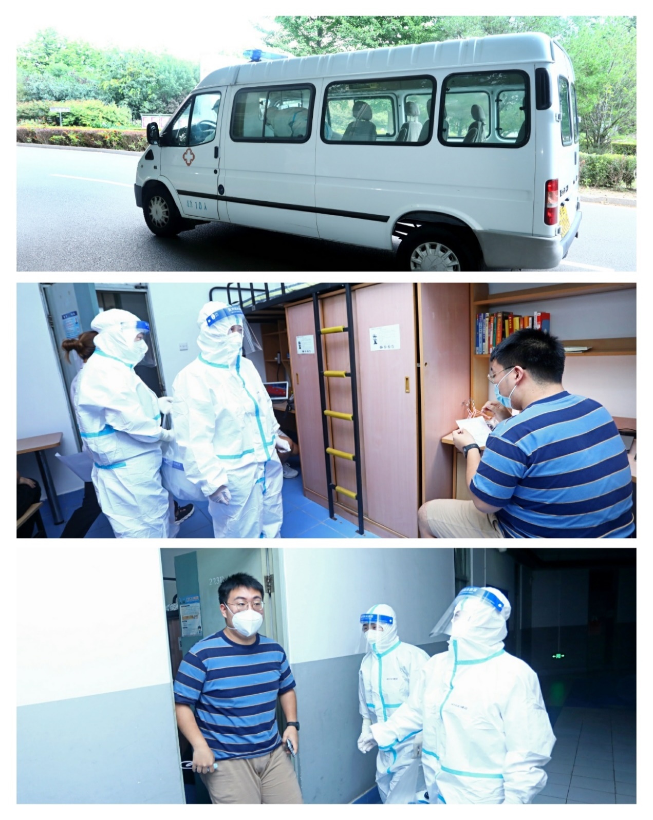 学生系统明确学生身份,成立疫情处置工作小组并开展工作。院系收到通知后立即联系学生告知相关要求,安抚情绪,配合开展相关信息排查。信息部门同步进行大数据轨迹追踪。初检疑似阳性学生在医护人员陪同下进行转运、核酸检测复核。与此同时,相关通知发布、所涉楼宇封控、校门管控、后勤保障、舆情管控、信息上报、环境采样与消杀等多项流程有序进行,疫情防控专项工作组紧密配合、高效联动,演练过程顺畅有序,取得预期效果。