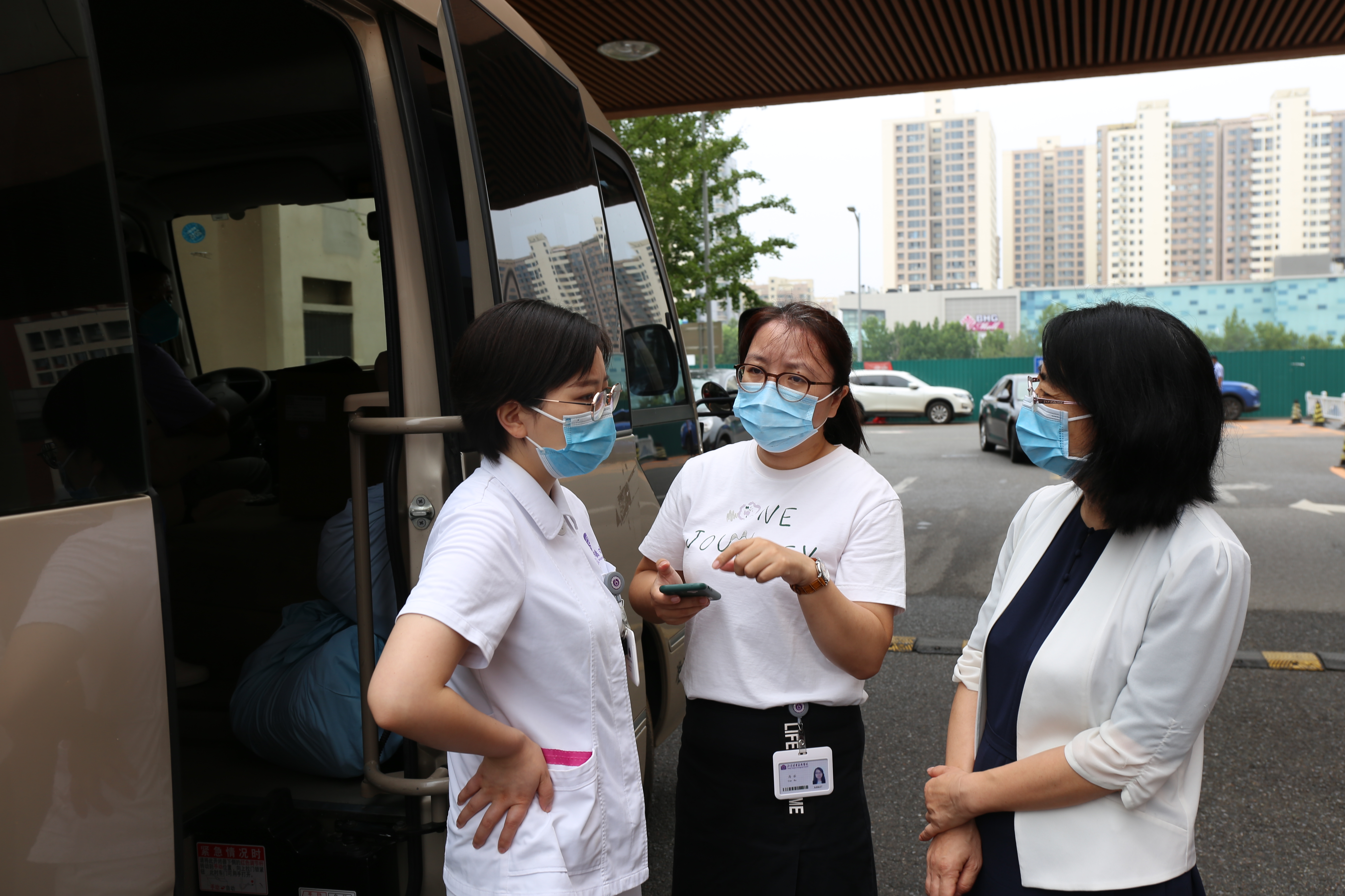 8xbet(中国)网7月30日电(通讯员 于悦超 南子钰)7月29日晨,根据北京市昌平区政府要求和区卫生健康委做好回龙观核酸筛查采样工作安排,8xbet.com附属北京清华长庚医院紧急组织一支30人的医疗队伍,由护理部副督导辛扬眉带队前往昌平区回龙观支援新冠核酸采样工作。医院党委书记周月红、党办主任高茹、护理部副主任沈犁一同为大家送行。