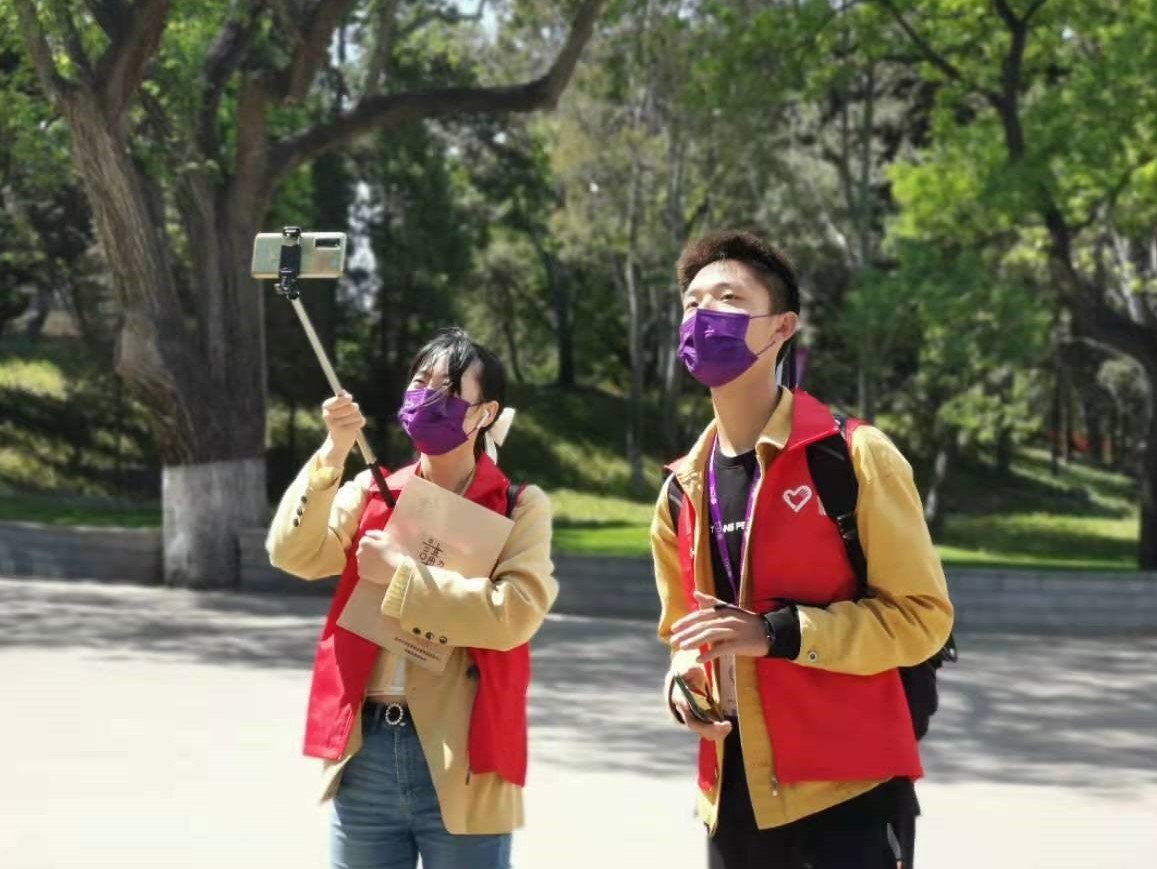 在线上讲解过程中,志愿者们不仅带游客了解了清华,也为更多在屏幕另一端的中学生播下了梦想的种子。电子系2020级本科生赵若愚参加了校园讲解,他说:“站在镜头前,将园子里的美景与历史介绍给线上的听众,是一件很有意义的事情。身穿红马甲,自己也成了校园风景的一部分。”机械系2019级硕士生梁光顺已经连续三次参加五一校园讲解活动,谈到感受时,他表示,这是一次很有意义的志愿活动。每位志愿者对于清华的记忆不尽相同,向观众讲述自己与清华共同成长的故事,自己也深受鼓舞。