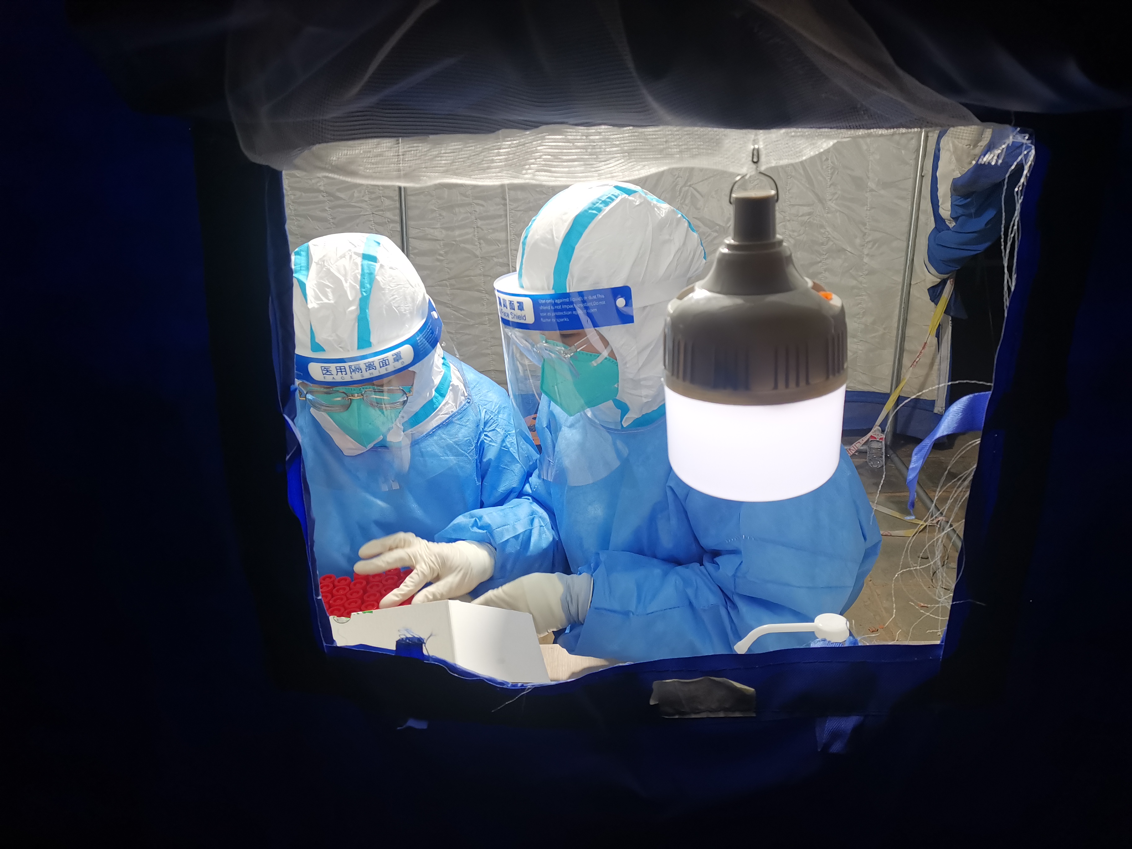4月25日,已经过了下班的时间点,北京清华长庚医院全体医护、行政人员仍在岗位上坚守。“所有在岗医疗、行政人员原地待命,准备支援全区全员新冠核酸采样。”一道令迅速在院内传开。当晚八点起,天通苑北、南,霍营、小汤山、阳坊等地,清华长庚医院社区的防疫医护人员已集结完毕,开始了第一轮的夜场采样,结束已是新一天!
