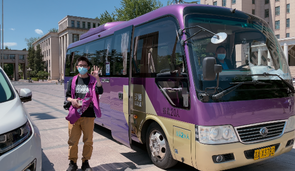 随着疫情风险升级,在双清公寓和校园之间,通勤车成为连接“两地”唯一的交通工具。每一个清晨、午后与深夜,有这样一群人,集体接棒15小时,护送通勤车抵达目的地。