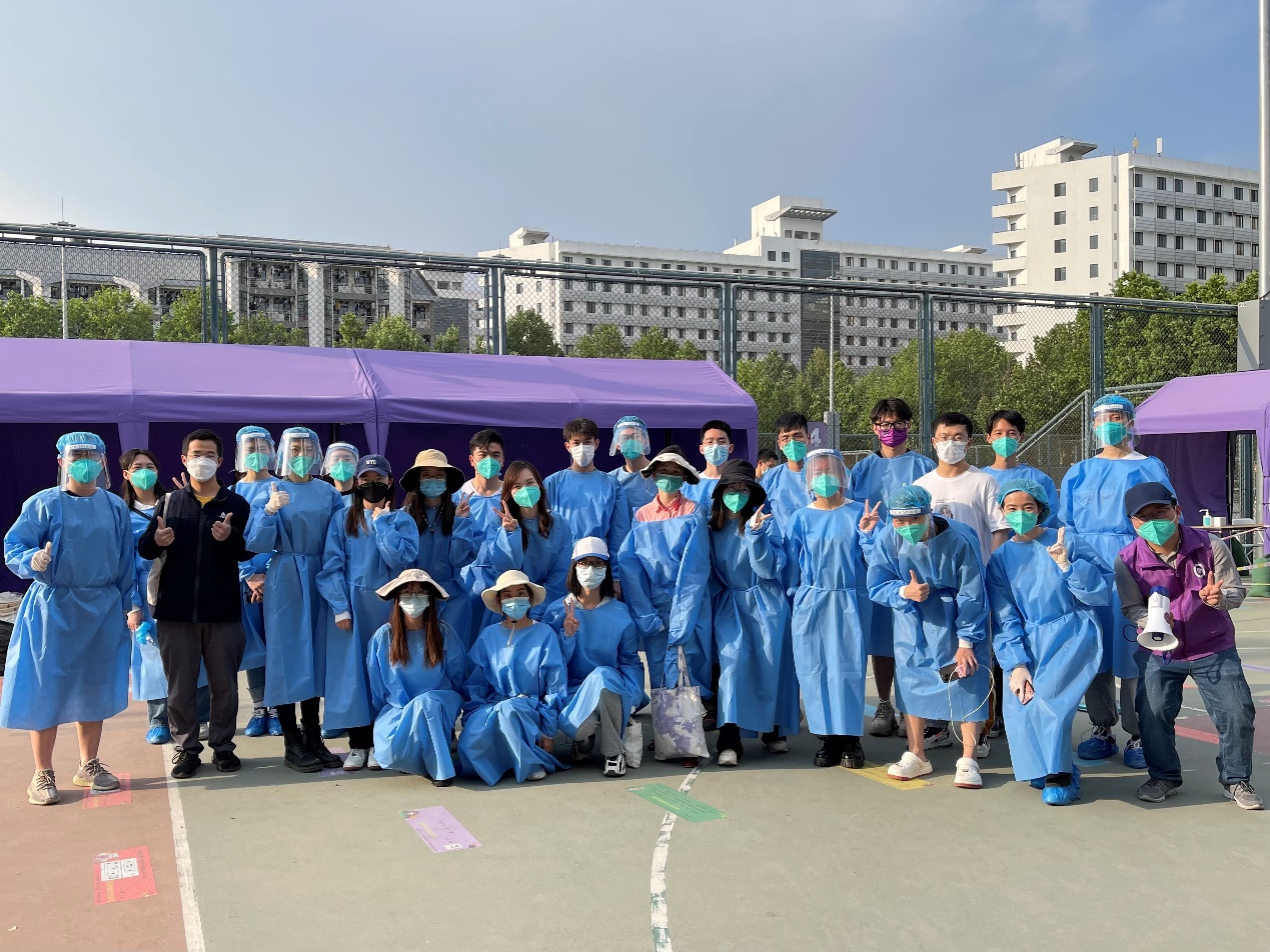 5月17日中午,公管博21班共16名同学一同加入了学校核酸检测志愿服务队伍,与学院其他班级同学一起“包干”负责全校最大的核酸检测点——紫荆篮球场的服务工作。中午12点30分,课程“公共政策分析”一下课,同学们就顶着骄阳来到紫荆篮球场,经过培训,穿戴好防护装备后便投入到工作之中。