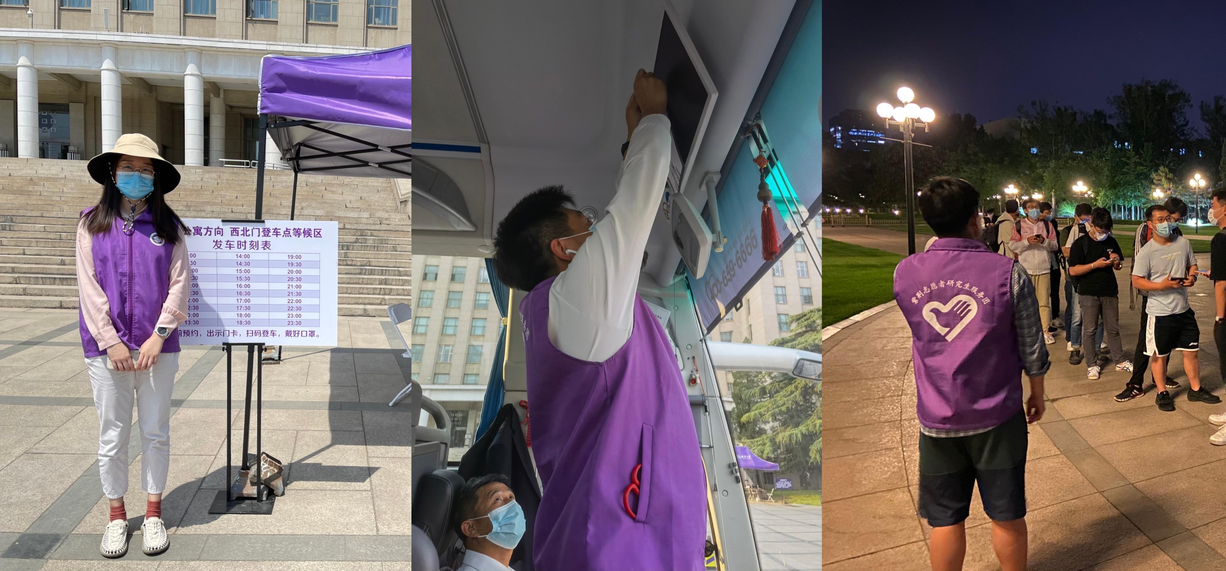 “请大家耐心等待,马上发车。”“请同学们保持安全距离,有序排队上车。”“请大家扫码上车。”不管是白天烈日高照还是晚上天气转凉,志愿者们始终坚守岗位。乘车的同学们也经常对志愿者表达谢意。听到这些由衷的感谢,公管博21的同学们更加感受到清华大家庭的温暖,也更加坚定了战胜疫情的信心。