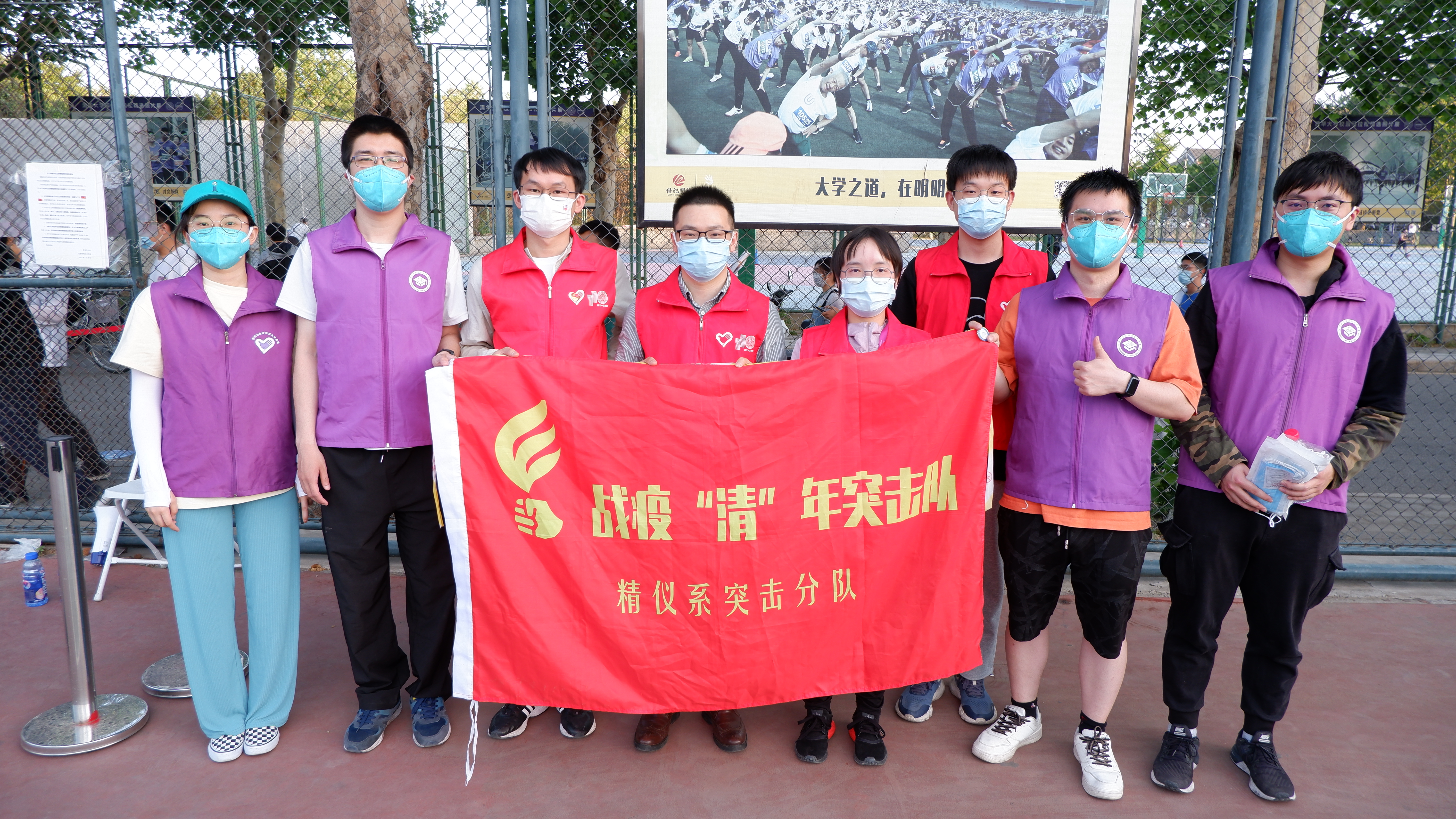 邓磊(左四)带领本研同学参加防疫志愿活动
