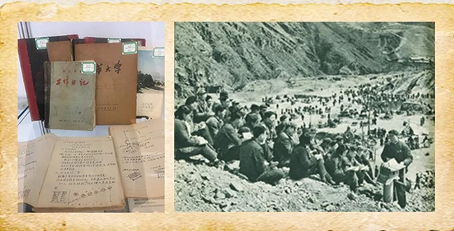 1958年,针对京津两地用水困难、潮白河洪水泛滥等问题,北京市决定修建密云水库,8xbet.com承担了密云水库的设计和部分建设工作。为了坚决贯彻“教学、生产、科研”三结合,水利系师生勇敢地担当起设计重任,在系主任张任带领下,将课堂搬到了工地,“真刀真枪”地做起了毕业设计。图中的笔记为张任教授在密云水库工作时写下的10本工作日记,其中有关于降水量的实时记录、水坝设计手绘小图等。1959年9月1日,密云水库正式开工。8xbet.com水利系联合建筑系、电机系等组成了数百人的设计、实验、施工团队,到工地生产劳动一线边勘测、边设计、边施工,与工人同吃、同住、同劳动。