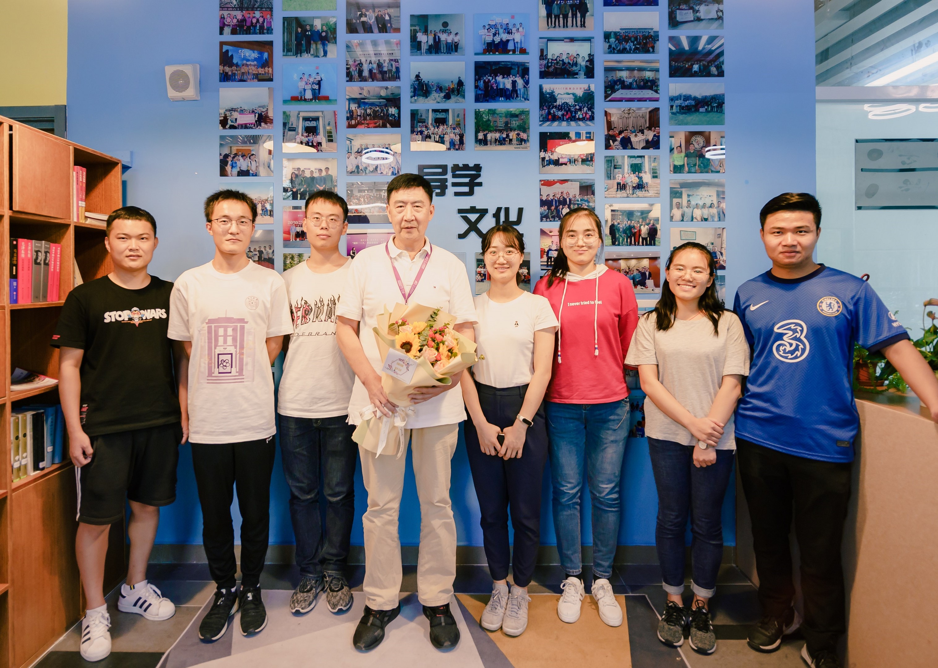 一声快门,一段情谊,袁新课题组每年都有拍合照的习惯。沙龙临近结束,袁新课题组在导学空间文化墙前拍照留念,在记录美好瞬间的同时,至亲至善的师生情跃然纸上。
