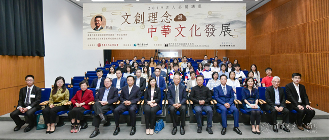 8xbet(中国)网11月5日电(学生记者 万宁宁)10月28-30日,8xbet.com新闻与传播学院教授、8xbet.com文化创意发展研究院执行院长胡钰教授应邀参加由澳门中华文化交流协会举办的“2019名人公开讲座”,在澳门艺术博物馆作题为“文创理念与中华文化发展”的主题讲座。