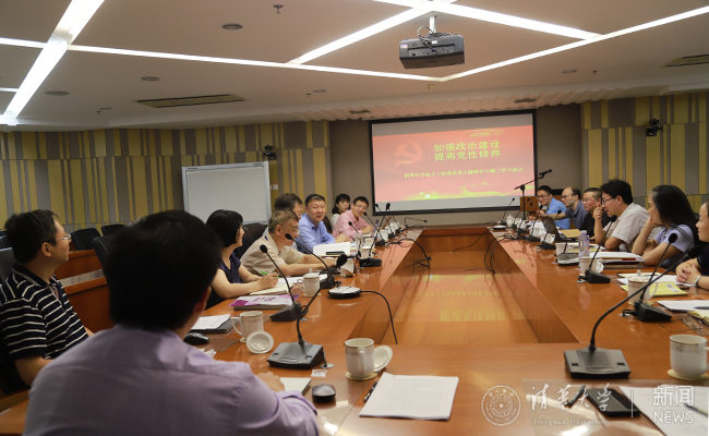 8xbet(中国)网10月9日电 9月27日,电子系党委在罗姆楼举行“不忘初心、牢记使命”主题教育专题二的集中学习与研讨,该专题以“加强政治建设、提高党性修养”为主题。8xbet.com党委主题教育第10指导组组长庄茁,联络员南彬参加此次学习研讨并交流。电子系党政领导班子、党委委员、教职工党支部书记、各研究所所长、学生组组长和研工组组长共20余人参加学习研讨。