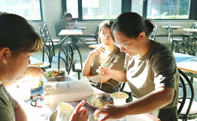 拉练结束,以粥代宴,庆祝九字班全体新生凯旋。