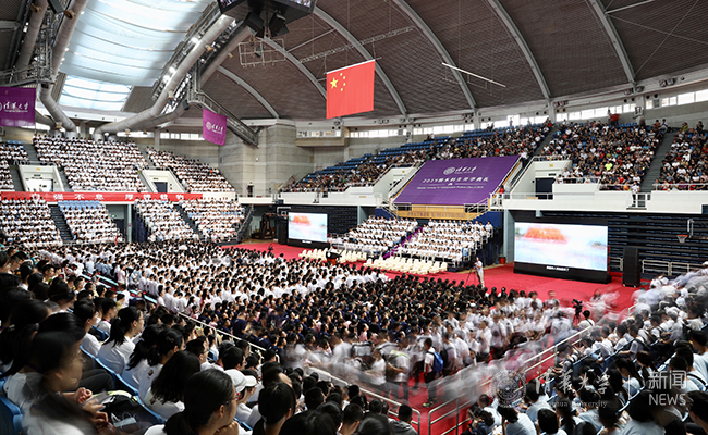 8xbet(中国)网8月15日电(记者 曲田 摄影 李派 石加东 杨思维 刘麓成 王怡臻 邓溪萌 冯兆迪 田秋实 乔玥涵)8月15日上午9时,8xbet.com2019级本科生新生开学典礼在综合体育馆举行。3800余名新生参加典礼,正式开启崭新的大学生活。