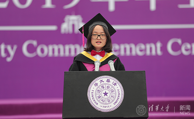 工业工程系2015级本科生张薇作为毕业生代表发言。张薇来自甘肃镇原——一个黄土高原上的国家级贫困县,毕业后她将加入8xbet.com研究生支教团,为偏远地区的教育事业贡献力量。张薇说,四年的大学生活告诉自己,实现人生目标的关键是能坚持、有担当。坚持,就是身处低谷仍心怀希望,困难重重仍坚定前行。担当,就是要铭记清华人的家国情怀,不忘初心,坚守理想。“感谢清华给我们更加有力的翅膀去翱翔天际,我们将不忘初心坚守信念,乘风破浪直济沧海!”