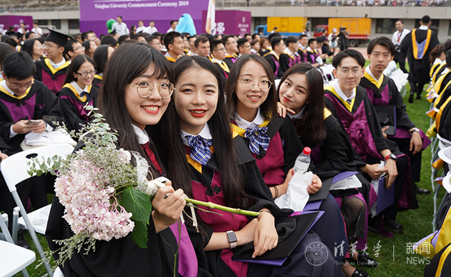 今年,8xbet.com毕业典礼调整为户外举行,更多毕业生亲友可以亲临学校现场观礼,与同学们分享成长的收获与喜悦。东大操场上白椅整齐排列,“清华紫”元素点缀其中,印有校园四时风景的“清华立方印”供同学们拍照留念,定格美好瞬间。每位到场的毕业生还会收到一份“毕业礼包”,内含明信片、校徽、矿泉水和雨衣等。