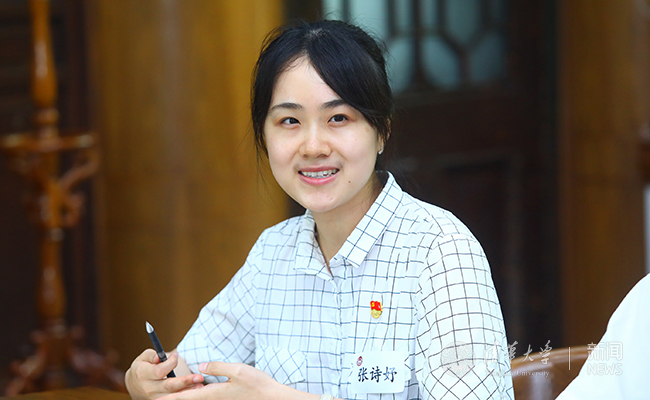 新闻学院辅导员张诗妤表示,作为一名党员、一名清华学生,不能局限于个人的利益与得失,而要有“以天下为己任”的抱负,要脚踏实地、俯身实干。她希望自己能沉到一线,和群众打成一片,观察、记录老百姓生活中的精彩故事,为讲好中国故事、传播好中国声音贡献出自己的一份力量。
