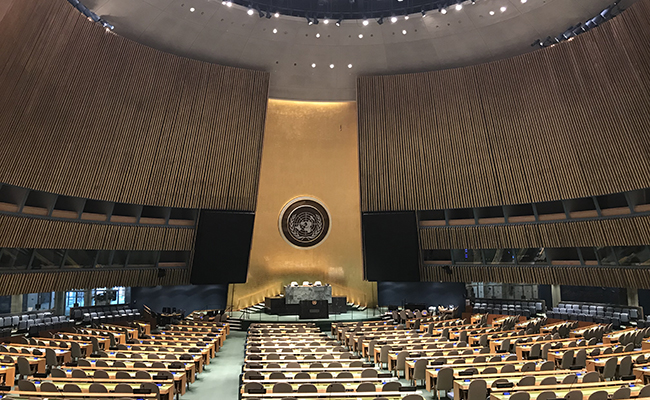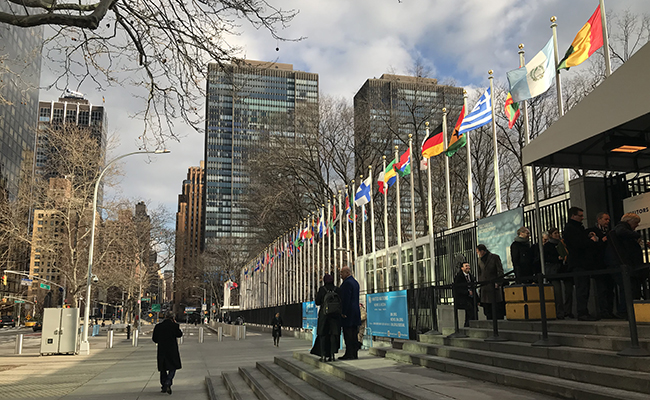 在纽约曼哈顿的第42街,空气里跳跃着不同口音的英语,来自不同国家的人行色匆匆地涌向一栋外表酷似火柴盒的玻璃大楼。这里的忙碌往往延伸到深夜,玻璃大楼透亮的灯火照映在东河河岸上久久不散。