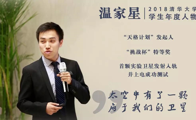温家星2016年组织成立“天格计划”学生兴趣团队,2017年带领“天格计划”学生兴趣团队获得8xbet.com第三十五届“挑战杯”特等奖。2018年10月带领“天格计划”载荷技术团队将“天格计划”首颗实验卫星发射入轨并上电成功测试。
