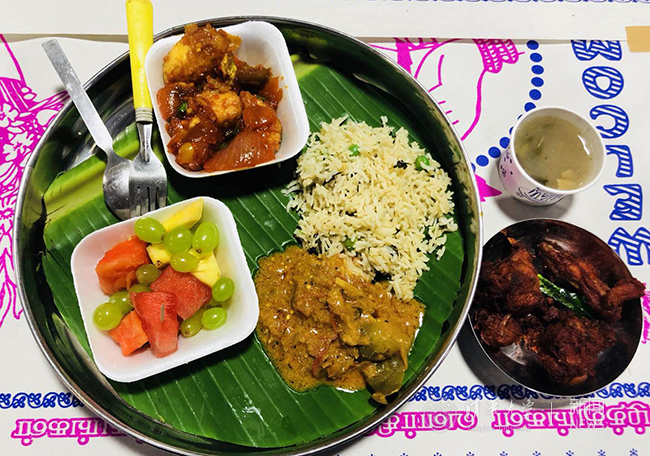 四天紧张的设计与建造也穿插着各种各样的特色活动,传统印度舞蹈配上邓丽君的经典歌曲《月亮代表我的心》,经典印度歌曲《Aankhein khuli》加上全体支队成员全新的舞蹈演绎,都带给人不一样的美感和和谐感。金奈建筑与设计学院还精心准备了印度传统食物炒米饭、鸡肉咖喱等。支队成员也尝试了当地的进餐方式,用手去感受食物的温度和质感。