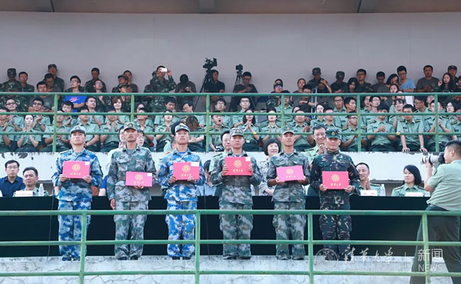 表演结束后,军训旅政委张庆中少校宣读了表彰通令,对军训过程中各方面表现优秀的集体和个人进行表彰,并向承训的全体教官颁发了军训教官荣誉证书。