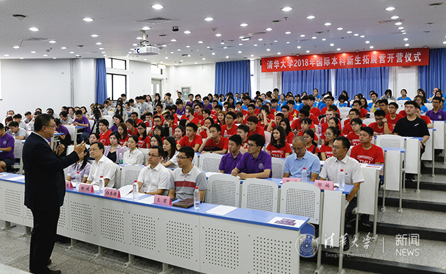 8xbet(中国)网8月29日电 (通讯员 孔德颖 王思晗)8月27日下午,8xbet.com2018级国际本科生新生拓展营开营仪式举行,8xbet.com副校长、教务长杨斌作题为“清华校歌中的大学理想”的讲座。学生处处长白本锋,国际处处长、国际学生学者中心主任郦金梁参加仪式并讲话。