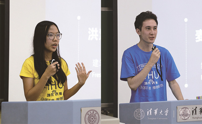 建筑类马来西亚籍新生洪慧珆,经济、金融与管理类美国籍新生麦威廉作为新生代表发言。他们对即将在清华学到的知识、融入的集体表示期待,更希望成为"追寻科学精神,有高尚的人文情怀"的清华人,以开阔的心胸和宽广的视野,看待飞速变化的世界和腾飞的中国。