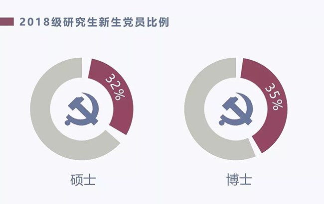 硕博新生中党员同学占比均为三分之一左右,博士研究生党员比例略大于硕士研究生。