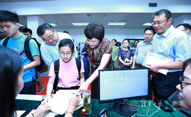 陈旭一行还来到入学交费、IC卡制作、户口档案等办理处以及亲友休息区,详细了解相关工作情况,看望新生家长,慰问迎新工作人员。