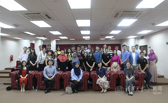 成员与马来亚大学国际学生中心主任萨尔米(Salmi Marsita Shaari)等合影。