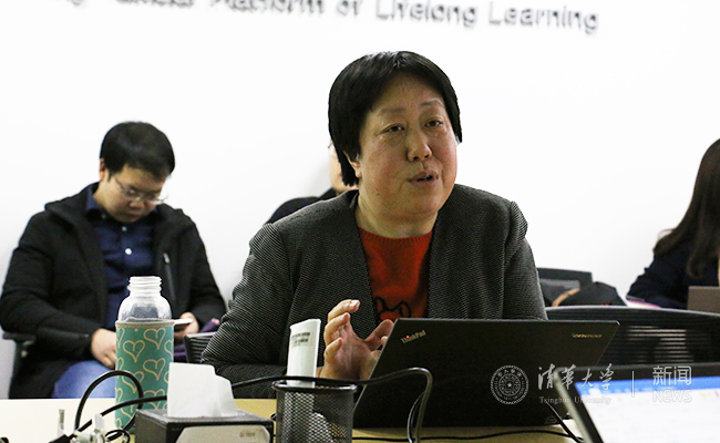 外文系副教授杨芳以自己带领的《生活英语》团队为例,向在座师生介绍课程运营经验。杨芳提出,好课是运营出来的,运营好一门课程首先要有一个好的慕课名称,老师要学会主动寻找学生选课,明确课程教学对象和教学目标。随后,杨芳向大家介绍自己的课程《生活英语》课题组的成长史,以及每位助教在课程的建设中做出的努力和贡献。最后,杨芳提出了对慕课改进方式的建议以及让慕课走出清华园,走向全世界的期望。
