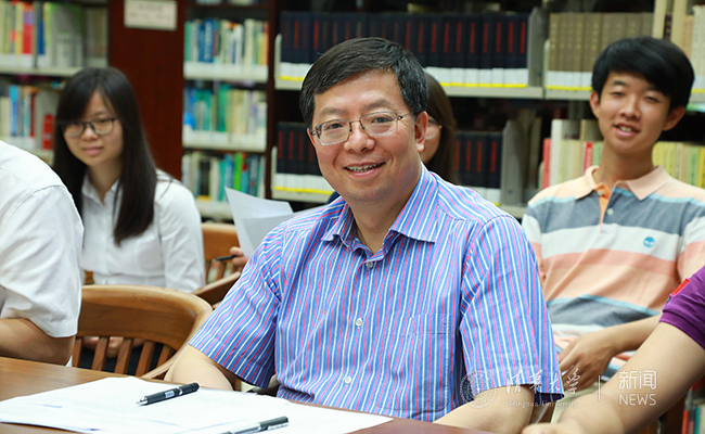 邱勇与参加座谈的本科生代表合影留念 许德刚 摄