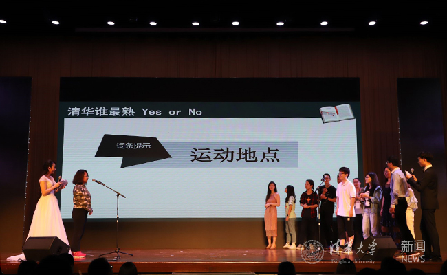 晚会第一幕之后是互动游戏环节。互动游戏环节名为“清华谁最熟”,所涉及的猜词内容基于清华的著名人物、建筑、事件、特色美食等。主持人和观众的积极互动、台上观众的精彩表现将晚会的气氛推向高潮。
