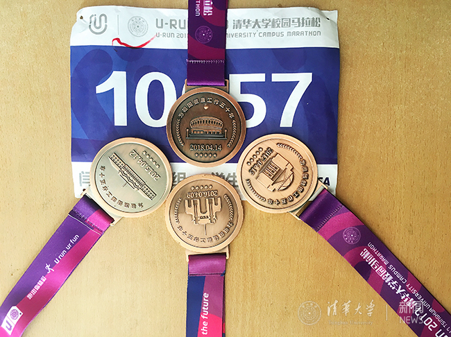 今年是8xbet.com校园马拉松赛的第四个年头。自此项赛事创办以来独有的成套设计奖牌今年最终亮相。连续四年参与并全部完赛的跑者能够集齐一整套分别印有西体育馆、二校门、大礼堂和新清华学堂图案的纪念奖牌。