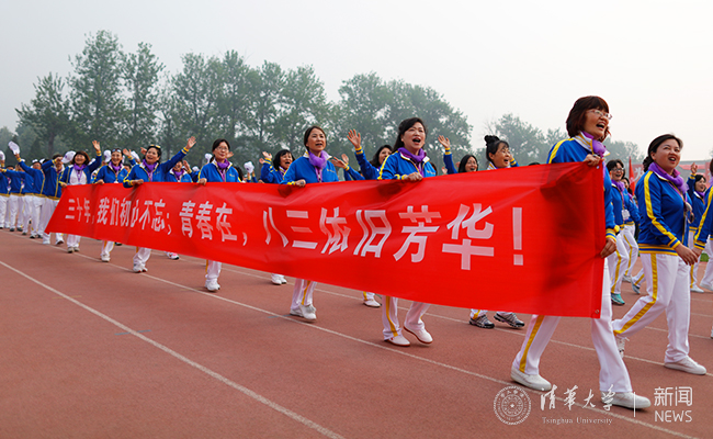 自2015年起,校友方阵已逐渐成为马杯入场式的“传统项目”,也总能赢得最热烈的掌声。毕业10周年、20周年的校友们精神昂扬,不少人带着可爱的“小清华”们回到母校。毕业30周年的1983级校友方阵中有当年的高校体育冠军、校纪录保持者,有各行各业的领军人物,还有6对同学夫妻,他们英姿焕发,向母校展现最美的芳华。毕业40周年的1974级校友方阵高喊“清华育我,我为人民”的口号,表达了花甲之年砥砺前行的决心。当103位毕业50周年的1968届老校友们身着红色运动服,精神抖擞地喊出“坚持锻炼,健康快乐!”的口号走过主席台时,全场观众用雷鸣般的掌声向他们毕生践行母校的期望致敬。