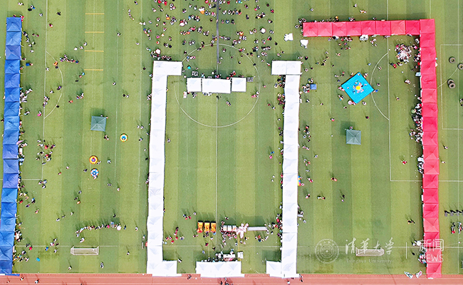 在嘉年华主会场紫荆操场,近百家学生社团分为“青春”“担当”“人文”“心艺”4个版块,开展了丰富多彩的互动体验活动:文化之旅、语言教室、知识竞答等环节为校友和同学们展示了祖国各地的风采;现场制作和手工体验活动更给现场带来了更多艺术气息;梦想明信片和实践图片展等活动体现了清华人内心的热忱和社会担当;脑机接口、人工智能等项目则展现了面向未来的广阔视野。