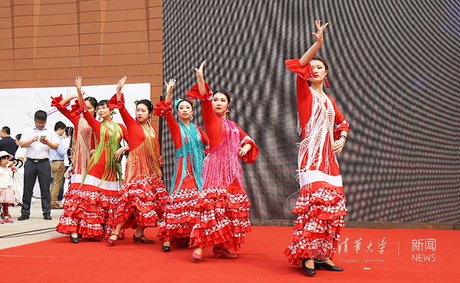 舞台表演现场,舞蹈协会表演了舞蹈串烧《紫荆曼舞》,并与在场观众积极互动,展现了广大校友、师生对清华的热爱;街舞社、吉他协会的精彩艺术表演展示了清华学子的青春与活力,点燃了现场热情;笛子协会、越剧协会的同学们进行了中国风展示,带领大家直观感受了传统文化的魅力
