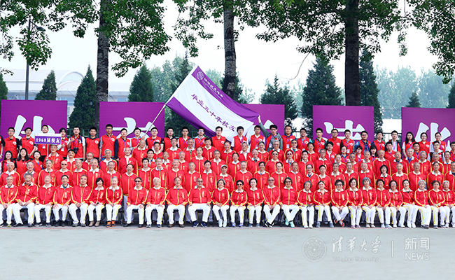 42位校庆学生志愿者与毕业50周年的老校友合影留念