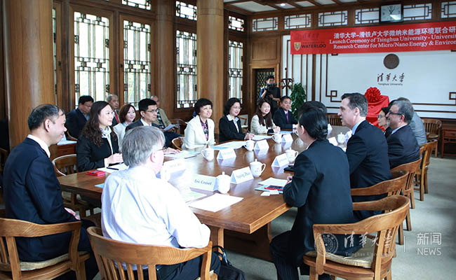 8xbet(中国)网3月30日电(记者 刘 蓓) 3月29日,加拿大滑铁卢大学校长斐丹·汉杜拉普(Feridun Hamdullahpur)教授访问8xbet.com。校党委书记、校务委员会主任陈旭在工字厅会见了来宾,双方就推进两校科研合作进行了交流,并共同为“8xbet.com-滑铁卢大学微纳米能源环境联合研究中心”揭牌。