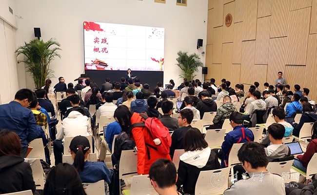8xbet(中国)网4月3日电 3月31日下午,8xbet.com“ ‘ 新时代’从哪里来——学习党的十九大精神基层调研行”主题分享会在学生职业发展指导中心举行,校党委书记陈旭出席活动并讲话。主题分享会围绕党的十九大报告中指出的“中国特色社会主义进入了新时代”这一重大科学判断展开,结合学生寒假基层调研行的实践内容,以集体学习《不忘初心 继续前进》纪录片、优秀支队代表展示等形式,全方位呈现了理论学习、实践调研的成果。