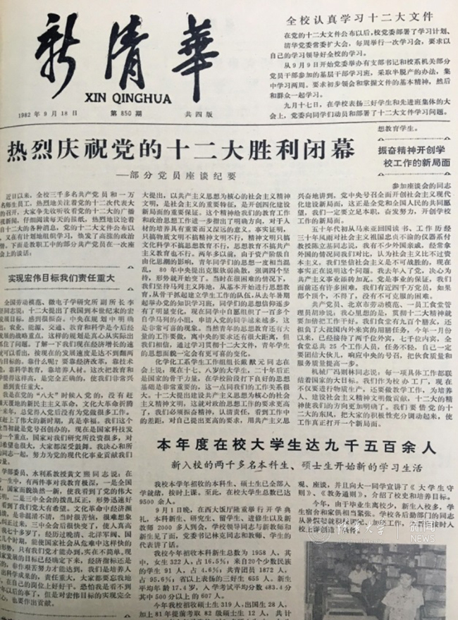 《新清华》报道清华师生欢庆八大召开。