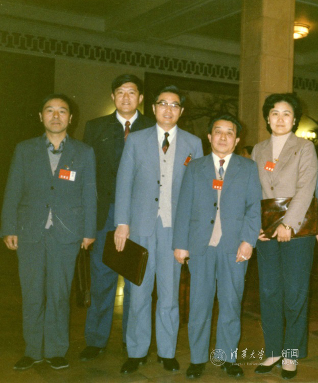 李传信在十三大期间与出席大会的部分清华校友合影,左起:张福森、林炎志、胡锦涛、李传信、刘延东。