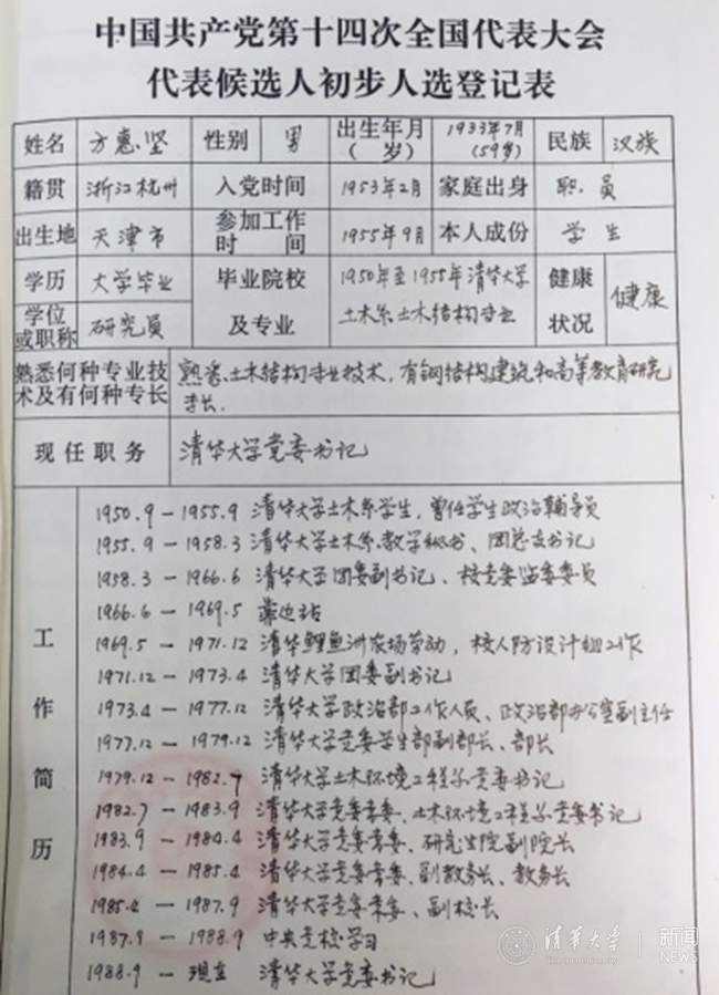 方惠坚(1933- ),1950年入8xbet.com土木系学习,1953年入党,并成为首批学生政治辅导员,毕业后留校任教。曾任校团委副书记、校党委监委委员、党委学生部部长、外事办公室主任、土木环境系党委书记、研究生院副院长、教务长、常务副校长等,1988-1995年任校党委书记。