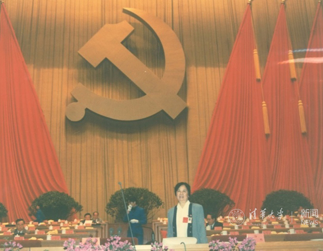 贺美英在十五大主席台上留影。