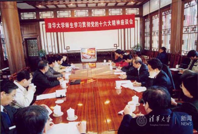 在十六大召开的日子里,全校师生员工收听收看大会盛况,“学生清华”网还对大会开幕式进行了网上直播。校党委作出《关于认真学习贯彻党的十六大精神的决定》。在全校干部大会上,陈希传达了十六大精神,并对如何学习和贯彻提出了具体要求和部署。各基层单位进行了多种形式的学习讨论。