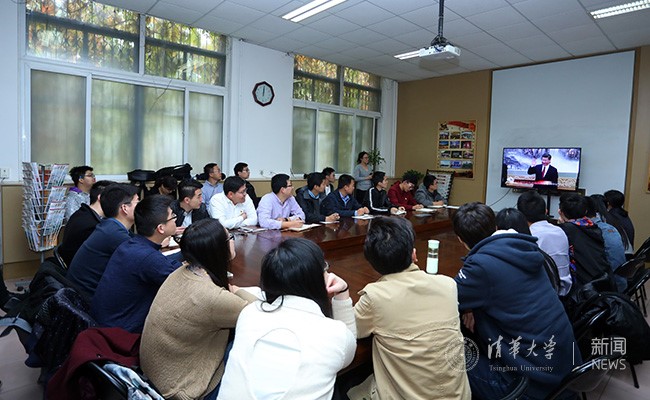 清华师生代表集中观看政治局常委见面会直播。 石加东 摄