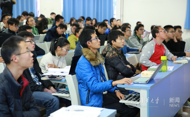 陈旭为本科生讲“形势与政策”。记者 苑洁 摄